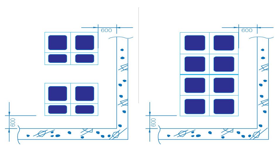A space for 600mm apart from the walls in four directions (1000mm for the upper part) is required for the installation of a tank and for its inspection & maintenance.